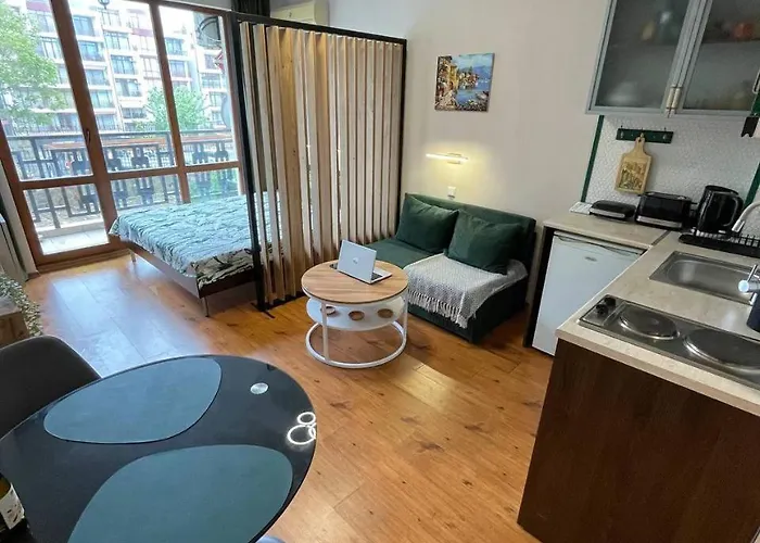 The 1-room Greenstudio W Sveti Vlas apartment is located within 5 km of the Elenite resort and about 10 minutes' drive from the Sunny Beach Amusement Park. Also, the presence of a private pool guarantees a relaxing stay.